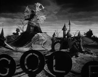 The witch sisters worked by day in a six-story room for making broomsticks. It had all the required materials - straw, sticks, and whatever else was needed - illustrated in magical detail. The Broom Room was the place where naughty children were taken; cleverly captured by the sisters and, until they were contrite or escaped, helped the sisters make their brooms.